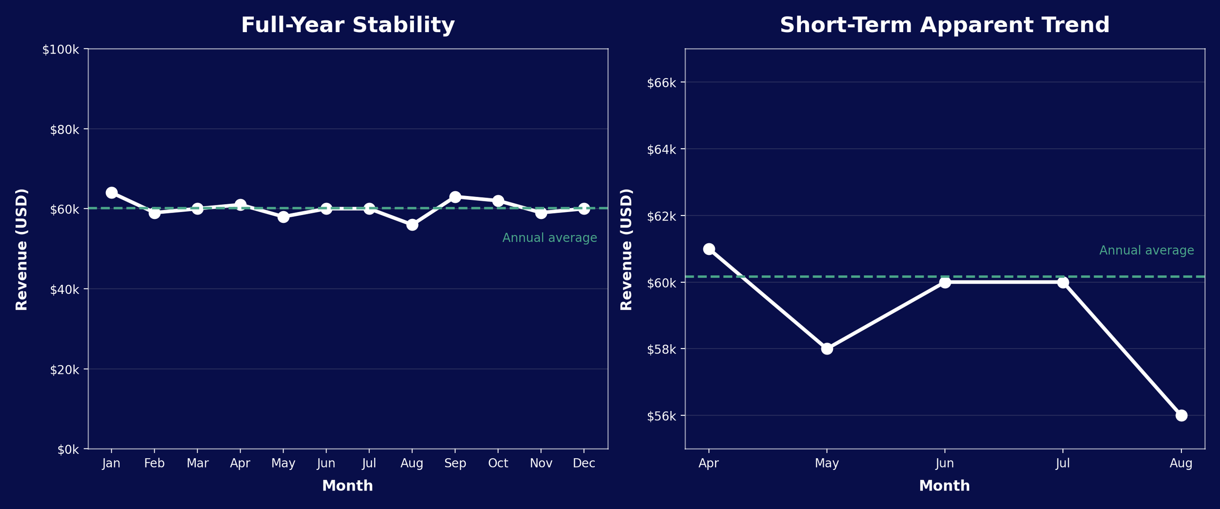 Caption: Short-term trends can appear significant but fall within normal variation when viewed across a full cycle.